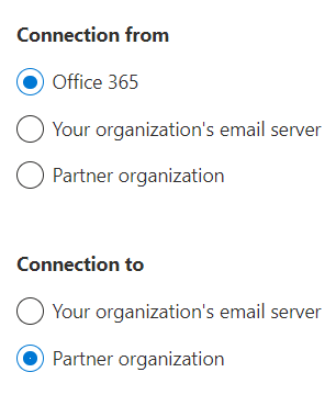 7. Select Office 365 for the Connection From: and Partner organization for the Connection to:. Click Next.