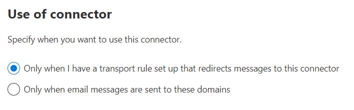 10. Select the option “Only when I have a transport rule set up that redirects messages to this connector“. Click Next