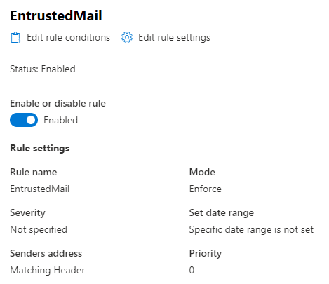 16. Double click on the EntrustedMail rule created and click the "enabled or disabled rule" switch, so that the rule is enabled.
